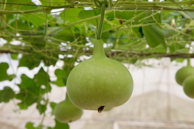 ระดับที่ 2 ปลูกพืชประเภทไม้เลื้อยเพื่อเป็นอาหาร เช่น บวบ น้ำเต้า ถั่วฝักยาว แตงกวา มะระขี้นก ถั่วพู ตำลึง