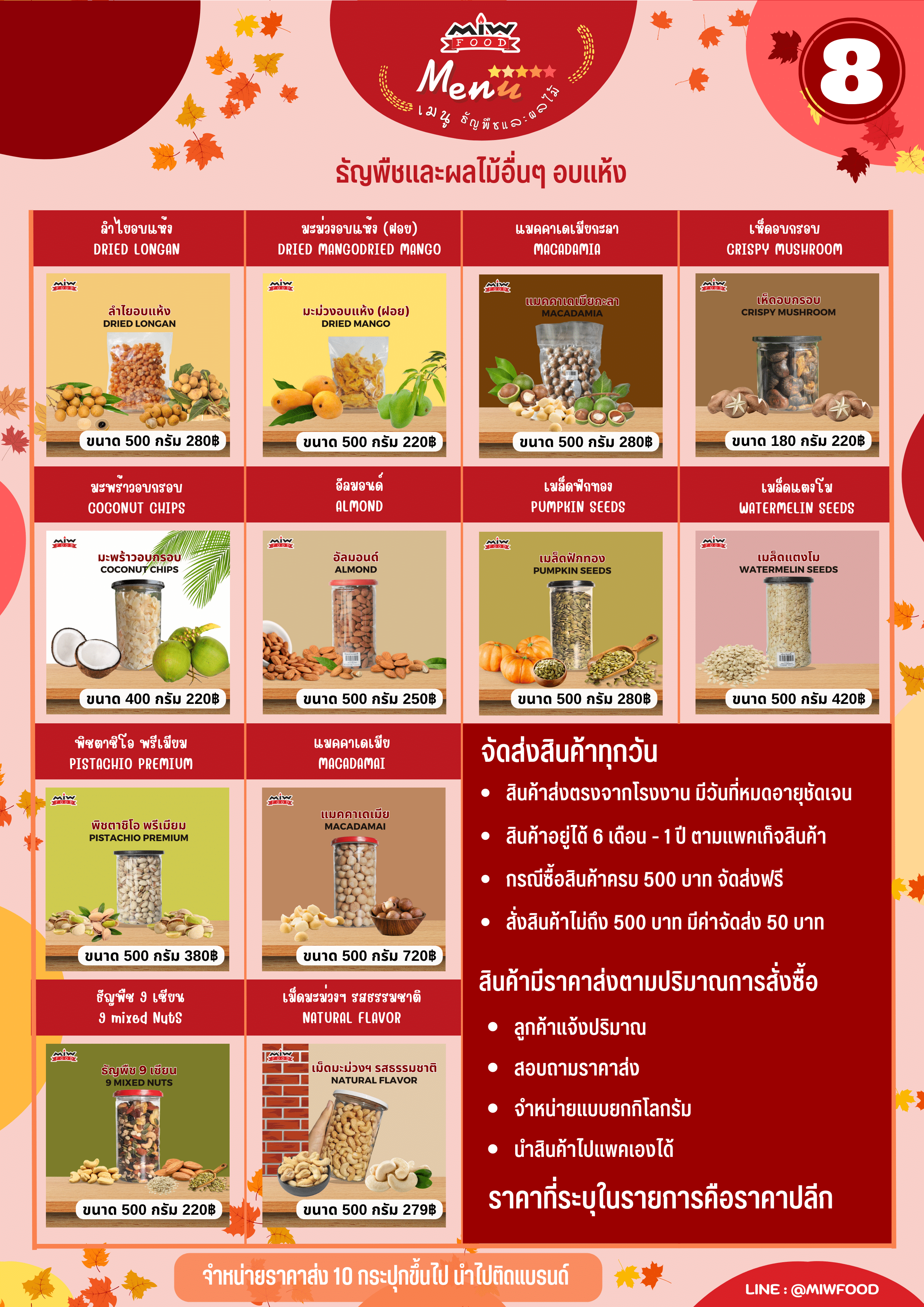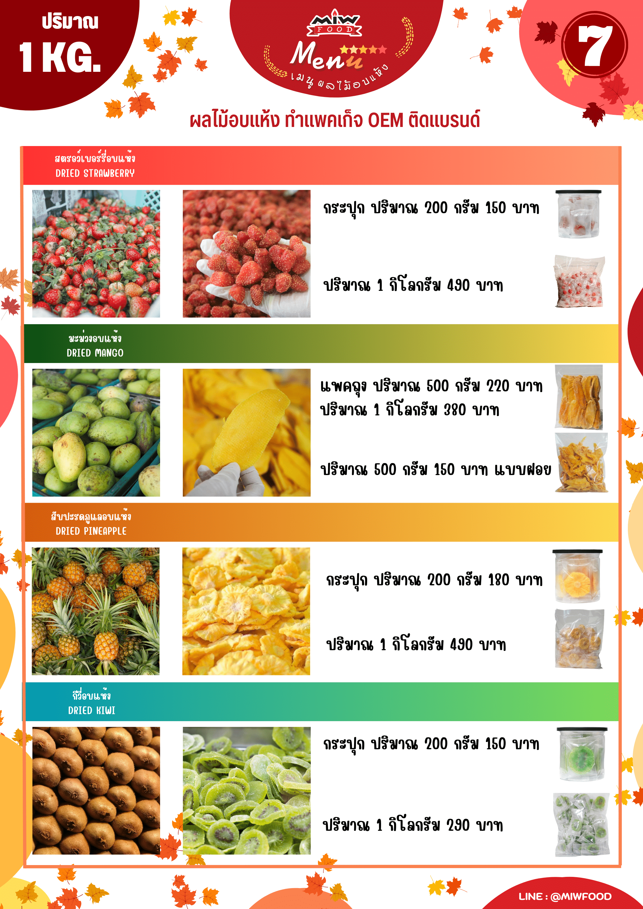 รายการผลไม้อบแห้ง MIWFOOD สั่งซื้อสินค้า https://shop.line.me/@miwfood ติดต่อสอบถามแอดมินเพิ่มเติม แอดไลน์ @MIWFOOD FacebookFacebookXTwitterLINELine Related posts: ทำความรู้จักกับ ผลไม้ผง ผลไม้อบแห้งผง ผงผลไม้ (Fruit Powder) ผลไม้อบแห้ง ของว่างแสนอร่อย ที่มีประโยชน์มากกว่าที่คิด ลำไยสวนนัดดาภา ทำความรู้จักกับนมประเภทต่าง ๆ เลือกประเภทของนมให้เหมาะสม และดื่มในปริมาณที่พอเหมาะ แอปเปิ้ลแดง กับ แอปเปิ้ลเขียว ต่างกันอย่างไร ที่นี่มีคำตอบ! 5 สูตรพุดดิ้งแสนอร่อย ทำง่าย กินได้เพลิน ๆ