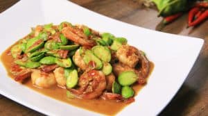 ผัดสะตอกะปิกุ้งสด