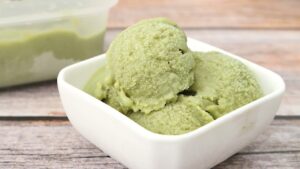- เมื่อไอศกรีมชาเขียวเสร็จแล้ว สามารถเสิร์ฟคู่กับผลไม้สด เช่น สตรอว์เบอร์รี หรือส้ม และถั่วแดงกวนได้