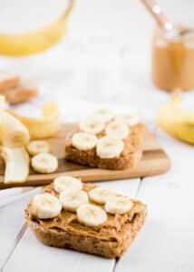 ขนมปังปิ้งเนยถั่ว และกล้วยหอม