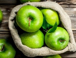 แอปเปิลเขียว เป็นผลไม้ลดความอ้วนที่มีปริมาณน้ำตาลน้อยกว่าแอปเปิลสีแดง โดยแอปเปิลเขียว 100 กรัม จะให้พลังงานประมาณ 52 แคลอรี มีใยอาหารสูง ช่วยเรื่องระบบขับถ่าย อุดมไปด้วยวิตามินซี ทำให้ผิวสวยแข็งแรง นอกจากนี้ยังมีช่วยลดคอเลสเตอรอล น้ำตาลในเลือด และเสริมสร้างภูมิคุ้มกันให้ร่างกายได้อีกด้วย