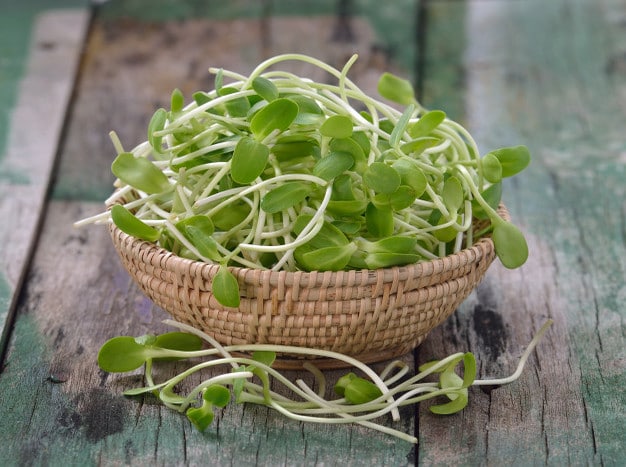ต้นอ่อนทานตะวัน เป็นผักที่ให้โปรตีนสูง ซึ่งเป็นโปรตีนที่มีกรดอะมิโนที่จำเป็นต่อร่างกาย จึงช่วยให้เอนไซม์ที่มีหน้าที่ผลิตเซลล์ในร่างกายทำหน้าที่ซ่อมแซมเนื้อเยื่อได้ดี โดยต้นอ่อนทานตะวัน 100 กรัม ให้โปรตีนมากถึง 23 กรัม นอกจากนี้ต้นอ่อนทานตะวัน ยังมีคุณค่าทางโภชนาการสูง อีกทั้งยังบำรุงหัวใจ และหลอดเลือดได้อีกด้วย