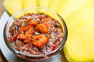 1. นำน้ำตาลมะพร้าว น้ำปลา เกลือป่น กะปิดี น้ำเปล่าใส่หม้อ เปิดไฟเคี่ยวให้ทุกอย่างเข้ากัน ปิดไฟพักไว้ให้เย็น