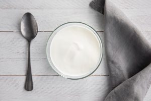 โยเกิร์ต เป็นแหล่งของโพรไบโอติกส์ (Probiotics) หรือจุลินทรีย์ชนิดดีที่ช่วยปรับสมดุลลำไส้ เมื่อระบบย่อยอาหารทำงานได้ดี การขับถ่ายจะสม่ำเสมอ ส่งผลให้ของเสียไม่ตกค้างในร่างกาย ซึ่งมีส่วนช่วยลดปัญหาสิว และความหมองคล้ำของผิวจากภายใน เพื่อให้ได้รับประโยชน์สูงสุด ควรเลือกโยเกิร์ตรสธรรมชาติที่ไม่เติมน้ำตาล